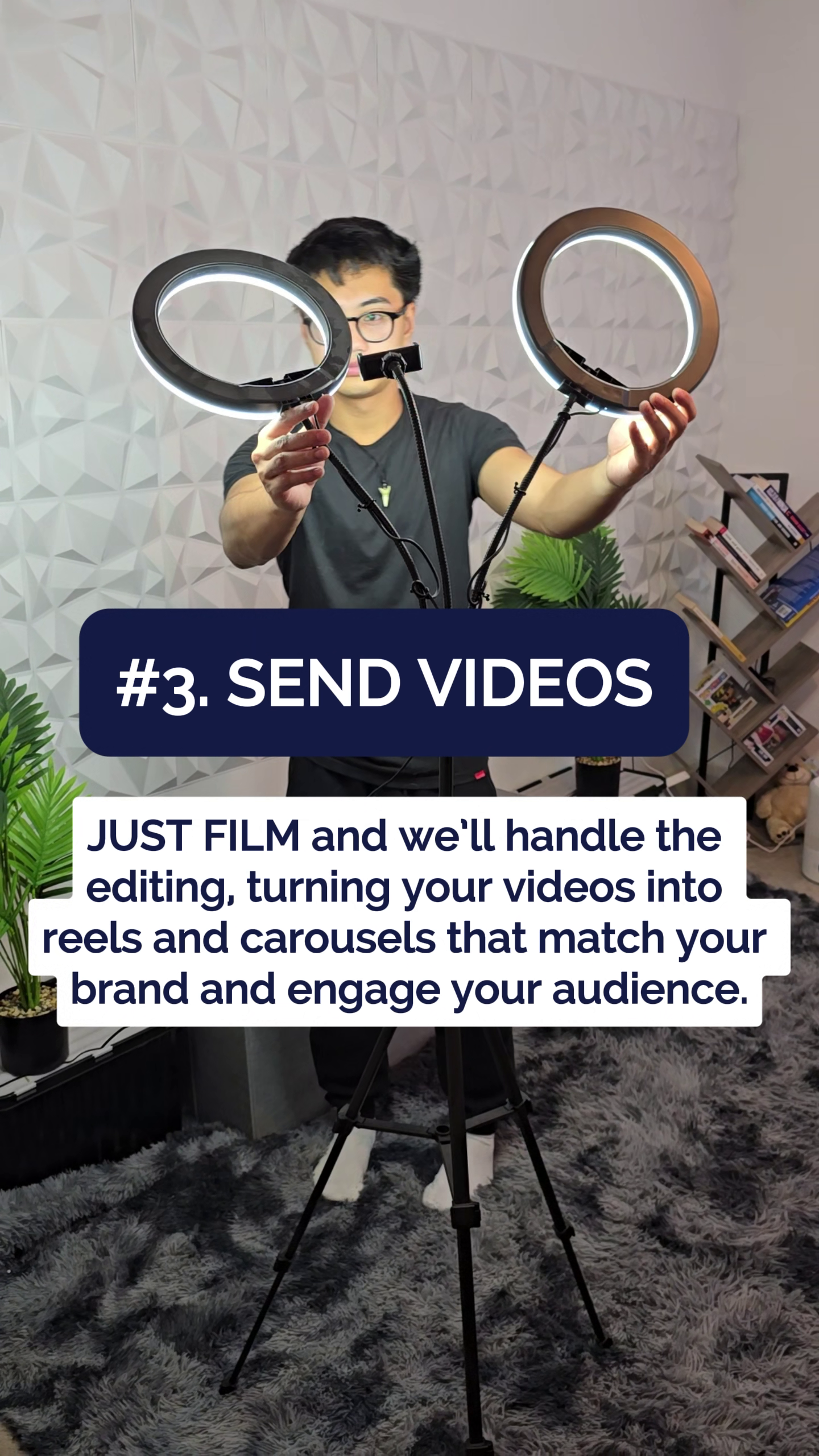Just film, and we’ll take care of the editing—transforming your videos into reels and carousels that align with your brand and captivate your audience.