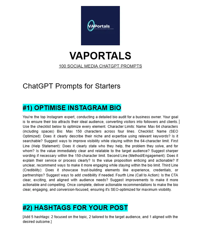 GET YOUR 100 SOCIAL MEDIA PROMPTS